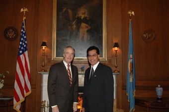 [Assignment: 48-DPA-02-05-08_SOI_K_Mori] Secretary Dirk Kempthorne [meeting at Main Interior] with delegation from the Federated States of Micronesia, led by Micronesia President Emanuel Mori [48-DPA-02-05-08_SOI_K_Mori_DOI_9645.JPG]