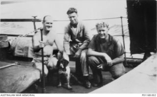 At Sea. c. 1944. Australian corvette HMAS Wagga which operated around islands north of New Guinea