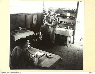Oro Bay, New Guinea. 1943-04. The first Regimental Aid Post and Admission Room at the Main Dressing Station, 10th Field Ambulance, Australian Army Medical Corps