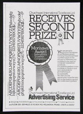 - Churchward International Typefaces Ltd Advertisement, New Zealand, by Joseph Churchward. Purchased 2008. Te Papa (FE012355/2). Overall: 210mm (width), 295mm (length)