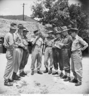 PORT MORESBY, NEW GUINEA. 1944-02-07. OFFICERS OF THE AUSTRALIAN NEW GUINEA ADMINISTRATIVE UNIT HEADQUARTERS, WITH OFFICERS OF THE FIELD STAFF AT A SIX DAY CONFERENCE ON DISTRICT ADMINISTRATION. ..
