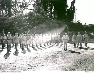 THE SOLOMON ISLANDS, 1945. AMERICAN MAJOR GENERAL R.J. MITCHELL REVIEWING NEW ZEALAND SERVICE PERSONNEL AT A PARADE HELD ON BOUGAINVILLE ISLAND BEFORE THE GENERAL'S DEPARTURE FROM THE ISLAND. ..