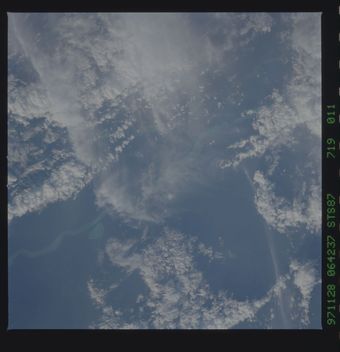 - The original finding aid described this as: Description: Earth observation views taken from shuttle orbiter Columbia during STS-87 mission. Subject Terms: STS-87, COLUMBIA (ORBITER), EARTH OBSERVATIONS (FROM SPACE) Date Taken: 11/28/1997 Categories: Earth Observations Interior_Exterior: Exterior Ground_Orbit: On-orbit Original: Film - 70MM CT Pr...