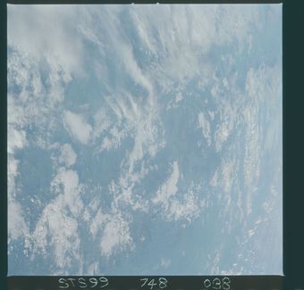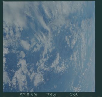 - The original finding aid described this as: Description: ``Earth observation views taken from Endeavour, Orbital Vehicle (OV) 105, during the STS-99 mission.`` Subject Terms: STS-99 EARTH OBSERVATIONS (FROM SPACE) Date Taken: 3/13/2000 Categories: Earth Observations Interior_Exterior: Exterior Ground_Orbit: On-orbit Original: Film - 70MM CT Pres...