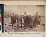 - "The Large Bundles of Sago brought from the West." Three men standing next to sago, outside wooden building. A boy is seated on the floor. One of 113 albumen prints mounted in an album by W.G.Lawes. Formerly the first resident missionary on the South Sea island of Niue, Lawes transferred to Papua New Guinea in 1874 until his retirement in 1906.... Papua New Guinea