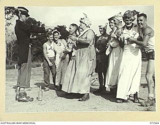 PORT MORESBY, NEW GUINEA. 1944-04-23. COMPETITORS IN THE "GRETNA GREEN" NOVELTY EVENT "COAXING" THEIR "CHOICES" INTO BARROWS FOR THE FINAL RUN TO THE "PARSON" DURING THE 2/101ST GENERAL TRANSPORT ..