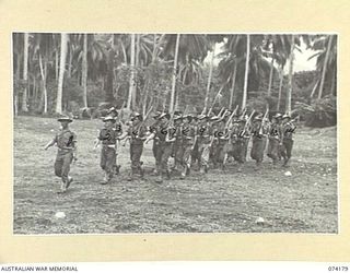 SIAR, NEW GUINEA. 1944-06-22. PERSONNEL OF NO.13 PLATOON, C COMPANY, 57/60TH INFANTRY BATTALION MOVING OFF THE UNIT PARADE GROUND AT THE CONCLUSION OF THE MORNING PARADE. IDENTIFIED PERSONNEL ARE:- ..