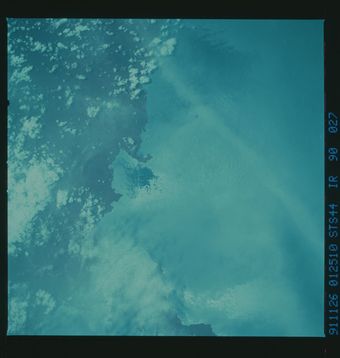- The original finding aid described this as: Description: Infrared Earth observation images taken from Atlantis, Orbiter Vehicle (OV) 104, during the STS-44 mission. Subject Terms: STS-44 EARTH OBSERVATIONS (FROM SPACE) INFRARED PHOTOGRAPHY Date Taken: 11/26/1991 Categories: Earth Observations Interior_Exterior: Exterior Ground_Orbit: On-orbit Or...