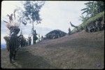 Pig festival, singsing preparations, Tuguma: men rehearse a song, watched by women and children