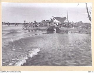 WEWAK AREA, NEW GUINEA. 1945-07-18. PERSONNEL OF B COMPANY, 2/1 INFANTRY BATTALION, IN THEIR FOLDING BOAT EQUIPMENT MOVING TO THEIR BEACH CAMP AFTER PATROLLING THE JUNGLE AT YARABOS