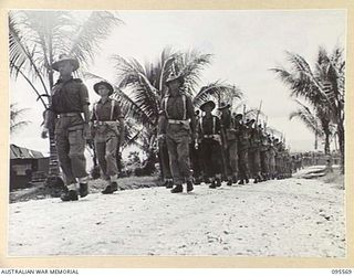 WUNUNG, JACQUINOT BAY, NEW BRITAIN, 1945-08-28. A FULL PARADE OF 37/52 INFANTRY BATTALION AND 29/46 INFANTRY BATTALION, BOTH OF 4 BRIGADE, WAS HELD ON WUNUNG AIRSTRIP. THIS PARADE WAS TO PREPARE ..