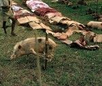 - A small pig tied up in front of the large mat display in Loltari Malambo at Esther and Jacob's wedding. The pig will become part of the wedding feast. UC San Diego Library, UC San Diego, La Jolla, CA 92093-0175 (https://library.ucsd.edu/dc/contact) Folder: 1970-Series1 / File: 70 Est wedding 6 - pig Penama Province (Vanuatu)Ambae Island (Vanuatu)VanuatuLongana village (Vanuatu)MelanesiaOceaniaPacific Islands