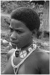 Portrait of woman wearing customary finery, girimalaile pendants string