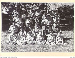 LAE, NEW GUINEA. 1945-11-24. THE STAFF OF THE DEPUTY DIRECTOR OF ELECTRICAL AND MECHANICAL ENGINEERING AT HQ FIRST ARMY. (FOR IDENTIFICATION OF 24 NAMED PERSONNEL REFER TO PROVISIONAL CAPTION OR ..