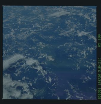 - The original finding aid described this as: Description: Photographic documentation showing STS-51B earth observations. Subject Terms: EARTH OBSERVATIONS (FROM SPACE) SPACE SHUTTLE MISSION 51-B Date Taken: 5/1/1985 0:00 Categories: Earth Observations Interior_Exterior: Exterior Ground_Orbit: On-orbit Original: Film - 70MM CT Preservation File Fo...