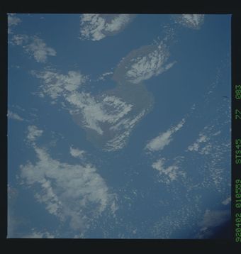 - The original finding aid described this as: Description: Photographic documentation showing STS-45 earth observations. Subject Terms: EARTH OBSERVATIONS (FROM SPACE), STS-45, ATLANTIS (ORBITER) Date Taken: 4/2/1992 Original: Film Preservation File Format: TIFF geon: TUAMOTU ARCHIPELAGO feat: PUKA PUKA lat: -15 lon: -139 tilt: 23 cldp: 10 nlat: -...