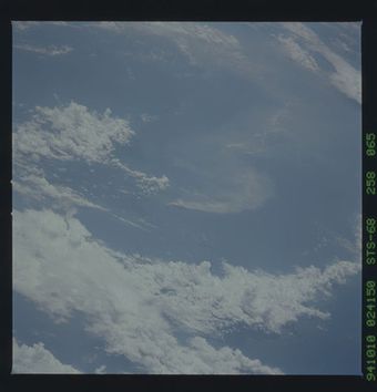 - The original finding aid described this as: Description: The Earth, viewed from the Orbiter Endeavour during STS-68. Subject Terms: STS-68 EARTH OBSERVATIONS (FROM SPACE) Date Taken: 10/6/1994 Categories: Earth Observations Interior_Exterior: Exterior Ground_Orbit: On-orbit Original: Film - 70MM CT Preservation File Format: TIFF geon: SOCIETY IS...