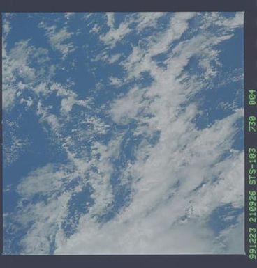 - The original finding aid described this as: Description: Earth observations taken during the STS-103 mission from the space shuttle Discovery. Subject Terms: EARTH OBSERVATIONS (FROM SPACE), STS-103, DISCOVERY (ORBITER) Date Taken: 12/23/1999 Categories: Earth Observations Interior_Exterior: Exterior Ground_Orbit: On-orbit Original: Film - 70MM ...