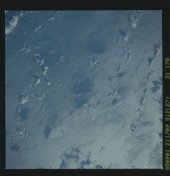 - The original finding aid described this as: Description: Earth Observation taken during the 51I mission. Subject Terms: EARTH OBSERVATIONS (FROM SPACE) STS-51I Date Taken: 9/1/1985 Categories: Earth Observations Interior_Exterior: Exterior Ground_Orbit: On-orbit Original: Film - 70MM CT Preservation File Format: TIFF geon: MARSHALL ISLANDS feat:...