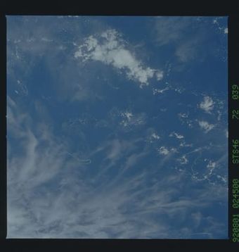 - The original finding aid described this as: Description: Earth observations taken from the shuttle orbiter Atlantis during the STS-46 mission. Subject Terms: STS-46, ATLANTIS (ORBITER), EARTH OBSERVATIONS (FROM SPACE) Date Taken: 8/1/1992 Categories: Earth Observations Interior_Exterior: Exterior Ground_Orbit: On-orbit Original: Film - 70MM CT P...