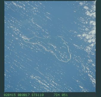 - The original finding aid described this as: Description: Earth observation views taken during the STS-110 mission. Subject Terms: EARTH OBSERVATIONS (FROM SPACE) STS-110 Date Taken: 4/15/2002 Categories: Earth Observations Interior_Exterior: Exterior Ground_Orbit: On-orbit Original: Film - 70MM CT Preservation File Format: TIFF geon: MARSHALL IS...
