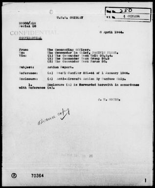 USS GRIDLEY - AA Act Rep, 3/30/44, Palau Is