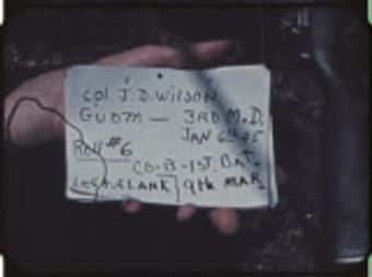 Training on Guam, with Marines moving out in the field, taking hills, and launching rockets with close air support overhead. Inspection conducted by Maj. Gen. Graves B. Erskine and Lt. Gen. Simon Bolivar Buckner Jr. Marine paints boxes. Guam