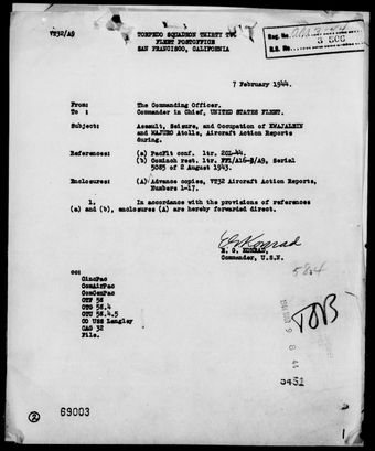 VF-12 & VT-12 - ACA Reports, 1/29-31/44, Marshall Islands