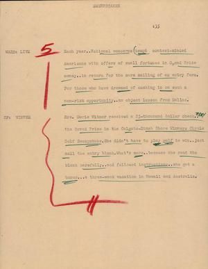 - Script from the WBAP-TV/NBC station in Fort Worth, Texas, relating a news story. 1 p. ; 28 cm. United States - Texas - Dallas County - Dallas