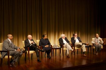 A Path to Equality: The Impact of the Civil Rights Acts of the 1960s; from left to right: Carol Moseley Braun, former Senator and Ambassador to New Zealand and Samoa; Charles Ferris, former Chairman of the FCC; moderator Todd Purdum, writer at Politico; and Eleanor Holmes Norton, Congresswoman for the District of Columbia