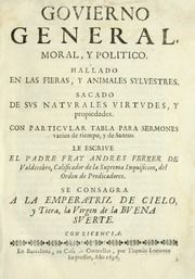 Govierno general, moral, y politico. Hallado en las fieras y animales sylvestres. Sacado de sus naturales virtudes, y propiedades. Con particular table para sermones varios de tiempo y de santos