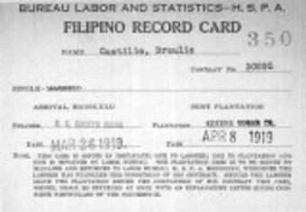 - The Hawaii Sugar Planters Association Filipino Laborer files include data on over 100,000 migrants to Hawaii from 1906-1949. The original collection consists of individual cards, shipping manifests, log books, and associated administrative records.