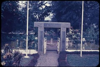 Memorial Gate, Ela Beach, Port Moresby, c1950