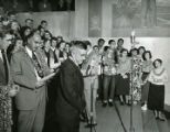 Secretary of the Interior Douglas McKay gives a speech during the KSLM Christmas broadcast in Honolulu