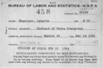 - The Hawaii Sugar Planters Association Filipino Laborer files include data on over 100,000 migrants to Hawaii from 1906-1949. The original collection consists of individual cards, shipping manifests, log books, and associated administrative records.