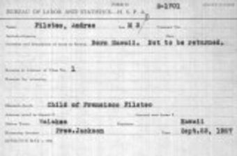 - The Hawaii Sugar Planters Association Filipino Laborer files include data on over 100,000 migrants to Hawaii from 1906-1949. The original collection consists of individual cards, shipping manifests, log books, and associated administrative records.