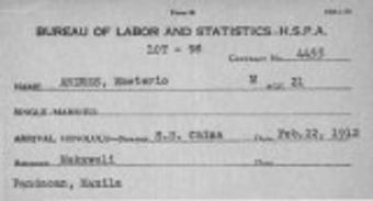 - The Hawaii Sugar Planters Association Filipino Laborer files include data on over 100,000 migrants to Hawaii from 1906-1949. The original collection consists of individual cards, shipping manifests, log books, and associated administrative records.