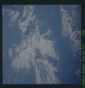 - The original finding aid described this as: Description: Earth observation views taken from orbiter Discovery during STS-85 mission. Subject Terms: STS-85, DISCOVERY (ORBITER), EARTH OBSERVATIONS (FROM SPACE), TYPHOONS Date Taken: 9/3/1997 Categories: Earth Observations Interior_Exterior: Exterior Ground_Orbit: On-orbit Original: Film - 70MM CT ...