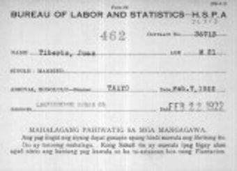 - The Hawaii Sugar Planters Association Filipino Laborer files include data on over 100,000 migrants to Hawaii from 1906-1949. The original collection consists of individual cards, shipping manifests, log books, and associated administrative records.