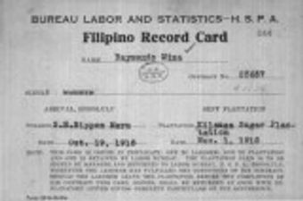 - The Hawaii Sugar Planters Association Filipino Laborer files include data on over 100,000 migrants to Hawaii from 1906-1949. The original collection consists of individual cards, shipping manifests, log books, and associated administrative records.