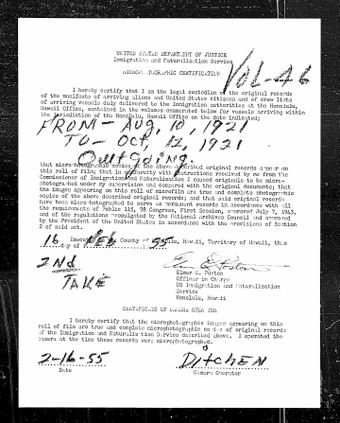 Volume 44: Immigration Service Forms, April 28, 1921 - June 12, 1921
