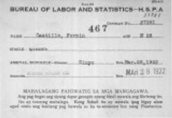 - The Hawaii Sugar Planters Association Filipino Laborer files include data on over 100,000 migrants to Hawaii from 1906-1949. The original collection consists of individual cards, shipping manifests, log books, and associated administrative records.