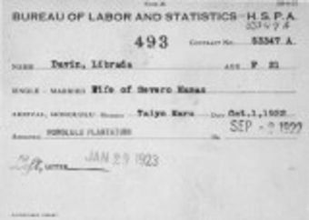 - The Hawaii Sugar Planters Association Filipino Laborer files include data on over 100,000 migrants to Hawaii from 1906-1949. The original collection consists of individual cards, shipping manifests, log books, and associated administrative records.