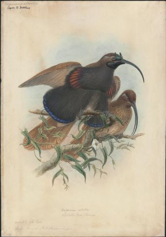 Paradigalla carunculata, Less. wattle bird of paradise, original by John Gould [William Matthew Hart]