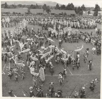 New Guinea highlanders taking part in a sing sing at Goroka, New Guinea, November 1970 / Australian Information Service photograph by W. Pedersen