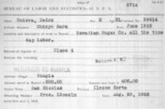 - The Hawaii Sugar Planters Association Filipino Laborer files include data on over 100,000 migrants to Hawaii from 1906-1949. The original collection consists of individual cards, shipping manifests, log books, and associated administrative records.