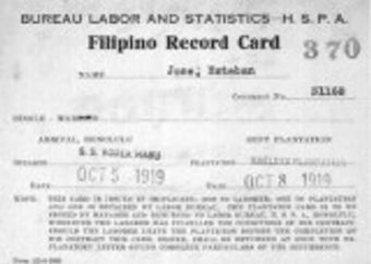 - The Hawaii Sugar Planters Association Filipino Laborer files include data on over 100,000 migrants to Hawaii from 1906-1949. The original collection consists of individual cards, shipping manifests, log books, and associated administrative records.