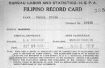 - The Hawaii Sugar Planters Association Filipino Laborer files include data on over 100,000 migrants to Hawaii from 1906-1949. The original collection consists of individual cards, shipping manifests, log books, and associated administrative records.