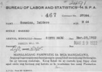 - The Hawaii Sugar Planters Association Filipino Laborer files include data on over 100,000 migrants to Hawaii from 1906-1949. The original collection consists of individual cards, shipping manifests, log books, and associated administrative records.