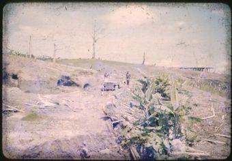 Driver digging out the medical officer's jeep, Higataru, Papua New Guinea, 1951 / Albert Speer